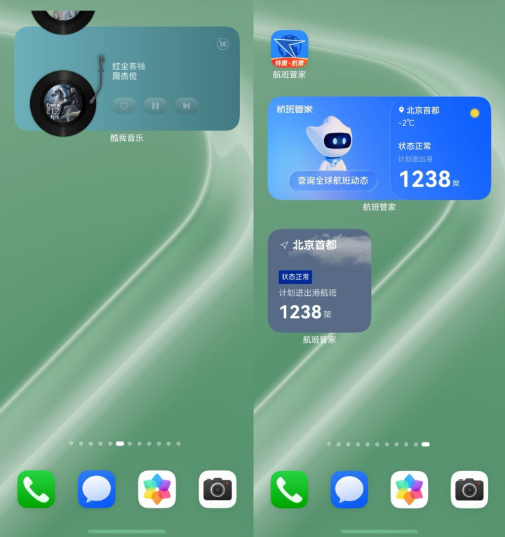 其他应用的互动卡片也藏着不少小惊喜。鸿蒙版酷我音乐的互动卡片切歌时,左侧的唱片海报会上滑切换,像在换真实唱片一样,瞬间拉满听歌的氛围感。鸿蒙版航班管家的卡片则会实时显示航班信息或机场天气,点击左侧人偶,还能触发超酷的信息查询动效,充满科技感!